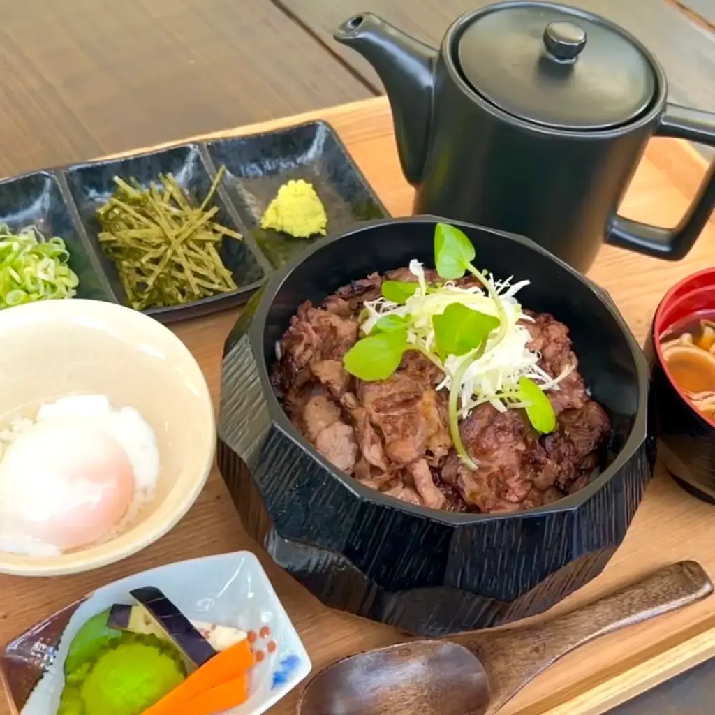 柔らかい国産牛をたっぷりとごはんの上にのせ、